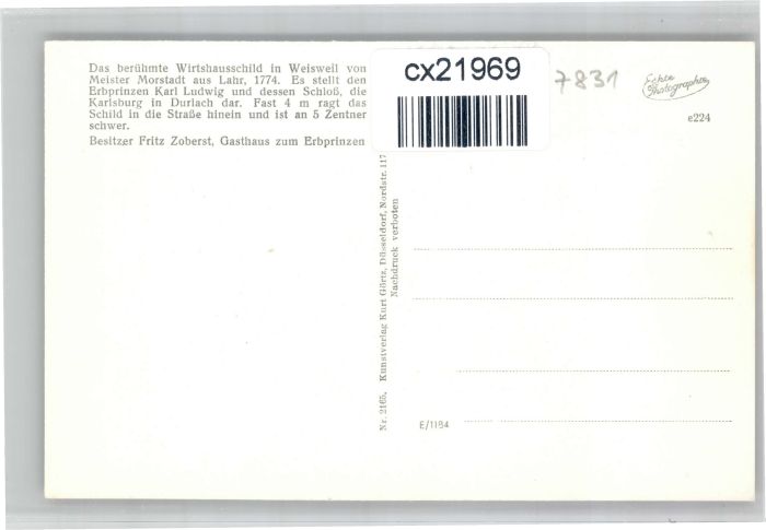 30740611 Weisweil Wirtshaus Schild postalisch nicht gelaufen KatCode: 11110008316049
