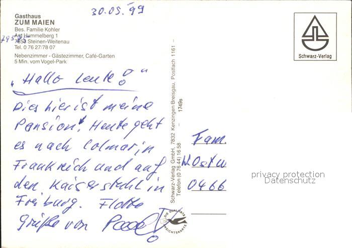 72571640 Weitenau Steinen Gasthaus Zum Maien postalisch nicht gelaufen Erhaltung siehe scans [LiesaD40] KatCode: 11110008336084