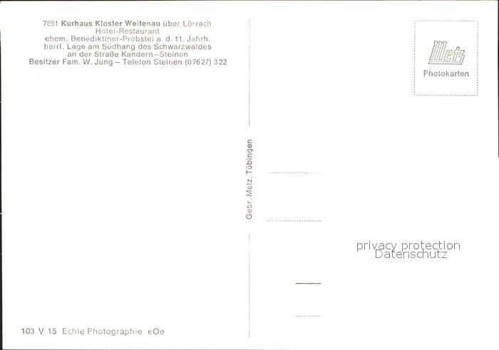 41784409 Weitenau Steinen Kurhaus Kloster Hotel Restaurant postalisch nicht gelaufen Erhaltung siehe scans KatCode: 11110008336084