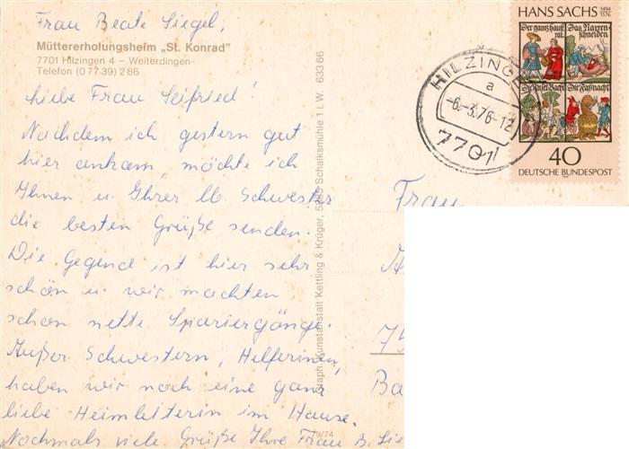 73937576 alte Postkarte Weiterdingen Hilzingen Muettererholungsheim St Konrad postalisch gelaufen Erhaltung siehe scans [WerneD78] KatCode: 11110008335035