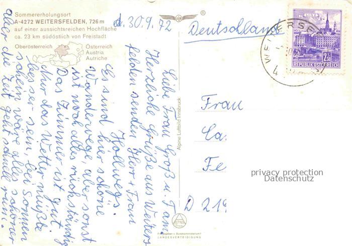 74141837 alte Postkarte Weitersfelden Muehlviertel Oberoesterreich AT Panorama Sommerfrische postalisch gelaufen Fliegeraufnahme Erhaltung siehe scans [FriedD77] KatCode: 11390313040625
