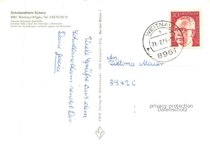 74020686 alte Postkarte Weitnau Bayern Schullandheim Schanz Winterpanorama Allgaeuer Alpen postalisch gelaufen Erhaltung siehe scans [FriedD77] KatCode: 11110009780144