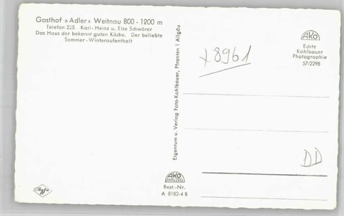 40246674 Weitnau Gasthof Adler Postalisch nicht gelaufen Alte Ansichtskarte Postkarte Katcode 11110009780144