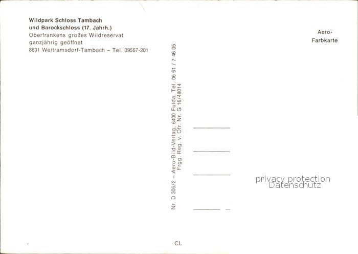 71831832 Weitramsdorf Fliegeraufnahme Wildpark Schloss Tambach Barockschloss postalisch nicht gelaufen Erhaltung siehe scans KatCode: 11110009473175