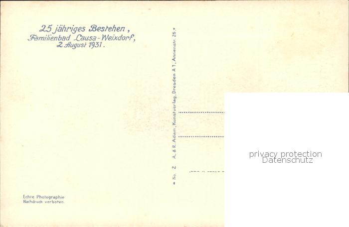 31721414 Weixdorf 25 jaehriges Bestehen Familienbad Lausa-Weixdorf postalisch nicht gelaufen Erhaltung siehe scans KatCode: 11110014262000