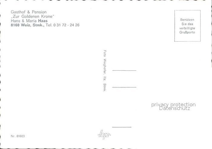 71935300 Weiz Steiermark Gasthof Pension Zur Goldenen Krone postalisch nicht gelaufen Erhaltung siehe scans KatCode: 11390224061755