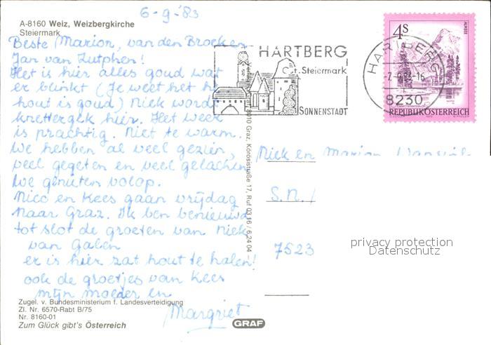 72317658 alte Postkarte Weiz Steiermark Weizbergkirche Fliegeraufnahme postalisch gelaufen Erhaltung siehe scans KatCode: 11390224061755