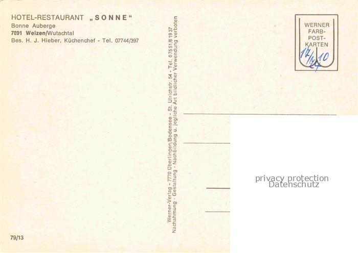 74153217 Weizen Wutachtal Stuehlingen BW Hotel Restaurant Sonne Freiterrasse Gaststube postalisch nicht gelaufen Erhaltung siehe scans [WerneD78] KatCode: 11110008337106