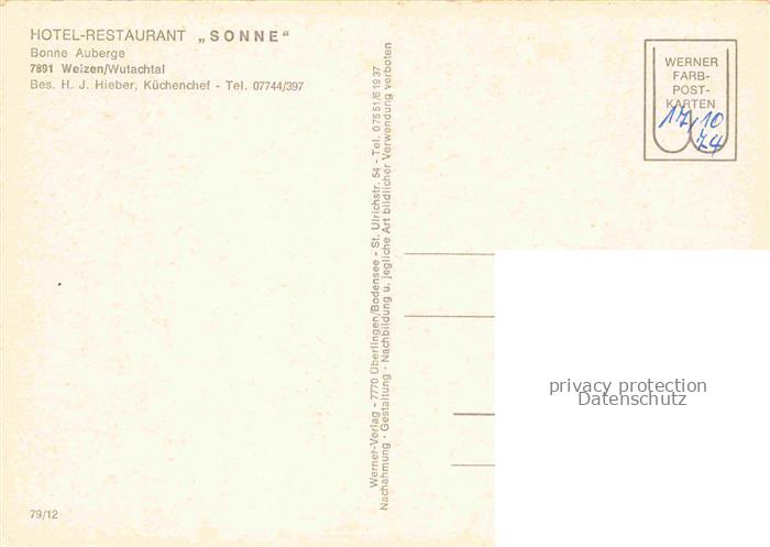 74153216 Weizen Wutachtal Stuehlingen BW Hotel Restaurant Sonne postalisch nicht gelaufen Erhaltung siehe scans [WerneD78] KatCode: 11110008337106