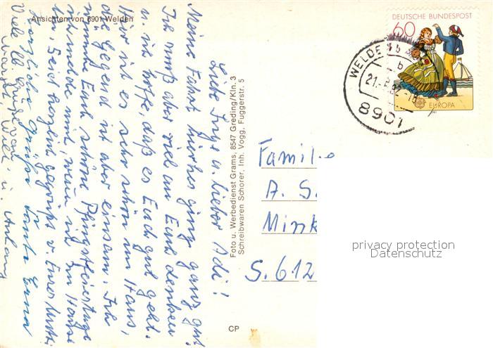73271827 alte Postkarte Welden Augsburg Panorama Teilansichten Kirche postalisch gelaufen Erhaltung siehe scans [WerneD78] KatCode: 11110009772216