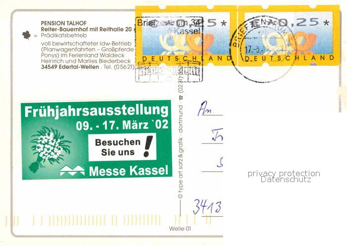 72726694 alte Postkarte Wellen Waldeck Ferien auf dem Bauernhof Pension Talhof Reiter postalisch gelaufen Erhaltung siehe scans [WerneD78] KatCode: 11110006635009