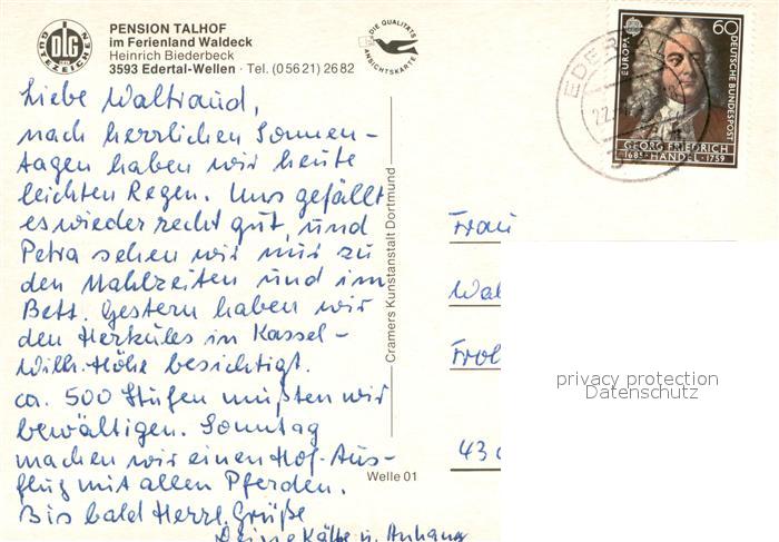 73642201 alte Postkarte Wellen Waldeck Pension Talhof Reiter Weiderinder Panorama postalisch gelaufen Erhaltung siehe scans [WerneD78] KatCode: 11110006635009
