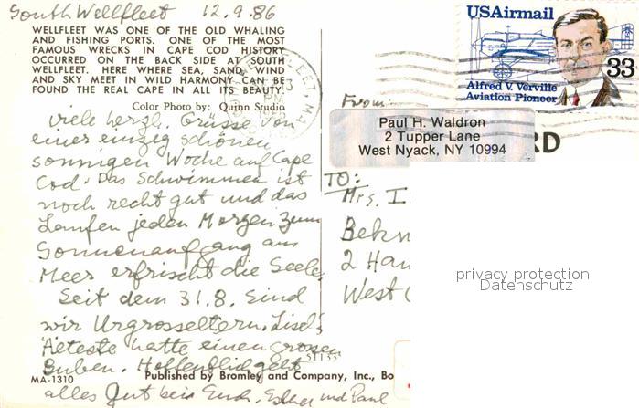 72743676 old postcard Wellfleet Massachusetts Whaling and Fishing Ports postalisch gelaufen Erhaltung siehe scans [LiesaD40] KatCode: 14140230000000