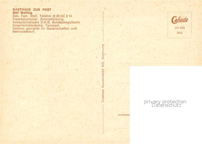 73568833 Welling Mayen Gasthaus zur Post Saal Kegelbahn postalisch nicht gelaufen Erhaltung siehe scans [FriedD77] KatCode: 11110007137112