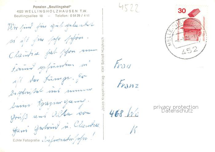 73710263 alte Postkarte Wellingholzhausen Freibad Pension Beutlingshof Waldmotiv postalisch gelaufen Erhaltung siehe scans [LiesaD40] KatCode: 11110003459024