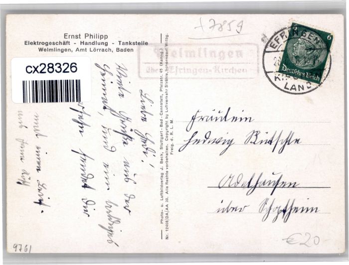 30909037 alte Postkarte Welmlingen Fliegeraufnahme Elektrogeschaeft Philipp postalisch gelaufen KatCode: 11110008336014