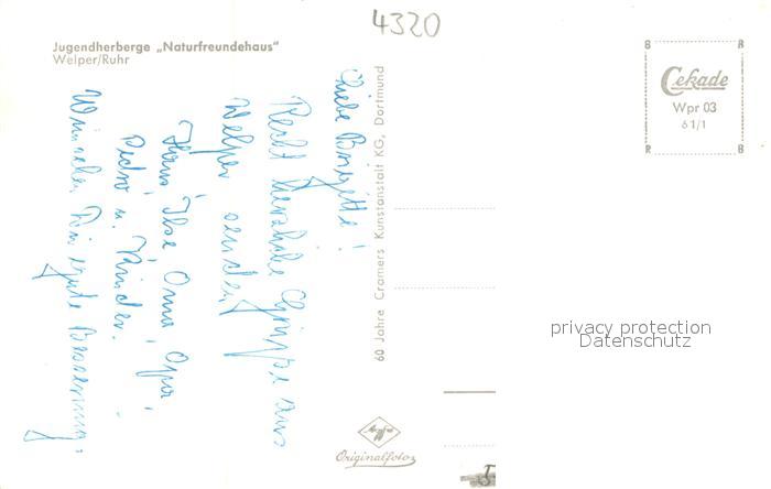 73692853 Welper Jugendherberge Naturfreundehaus postalisch nicht gelaufen Erhaltung siehe scans [FriedD77] KatCode: 11110005954016