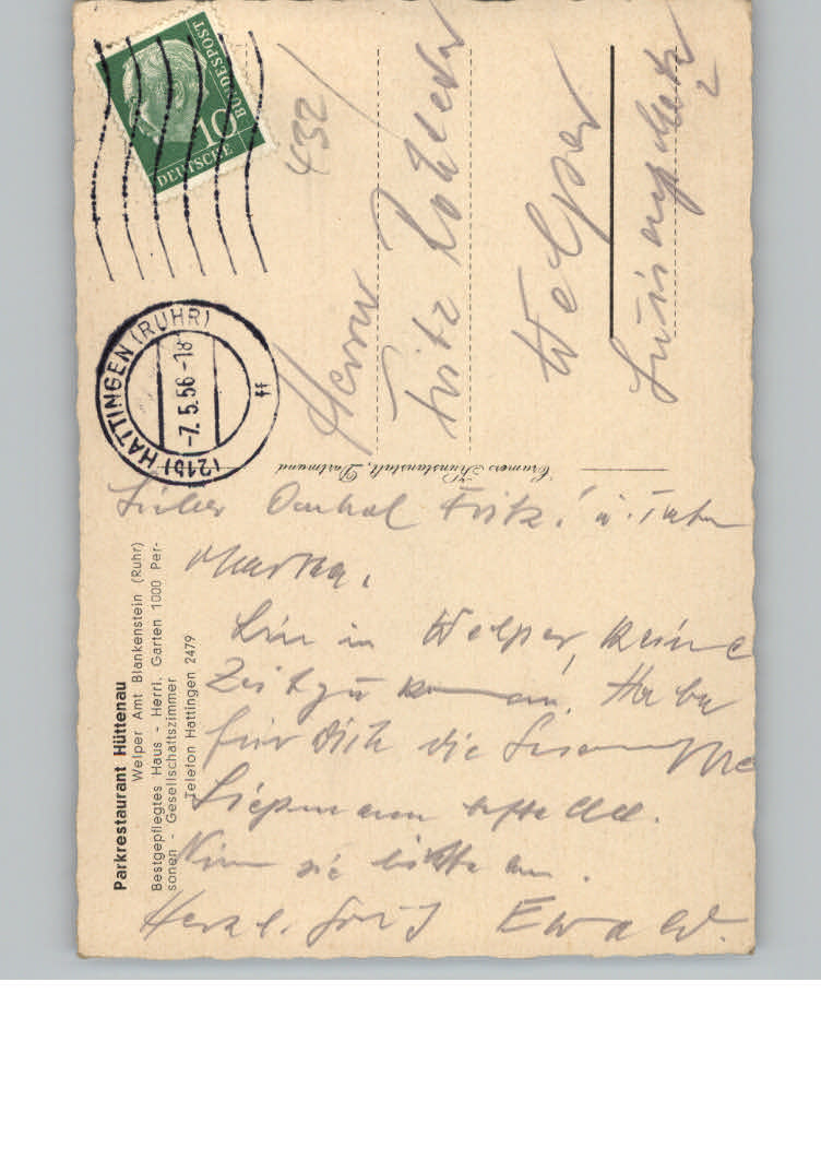 31133778 Welper Restaurant Huettenau postalisch nicht gelaufen KatCode: 11110005954016