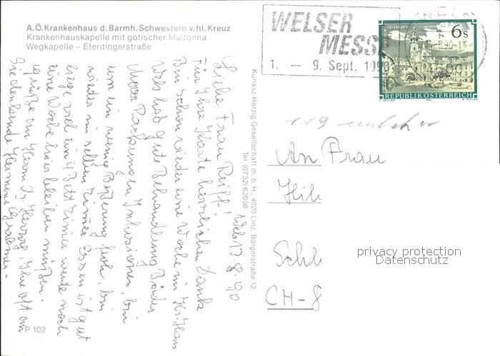 72296910 alte Postkarte Wels Krankenhaus der Barmherzigen Schwestern Kapelle Gotische Madonna postalisch gelaufen Erhaltung siehe scans KatCode: 11390