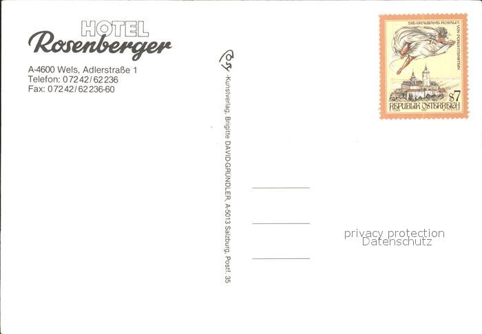 72179964 Wels Oberoesterreich Hotel rosenberger postalisch nicht gelaufen Erhaltung siehe scans KatCode: 11390