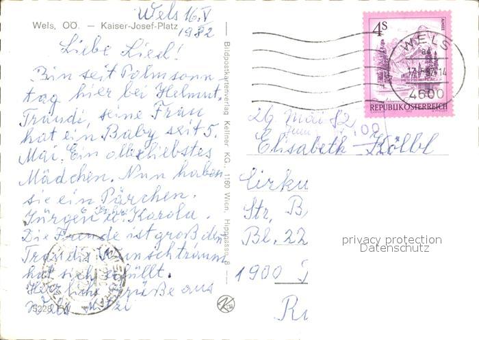 72036493 alte Postkarte Wels Oberoesterreich Kaiser Josef Platz postalisch gelaufen KatCode: 11390