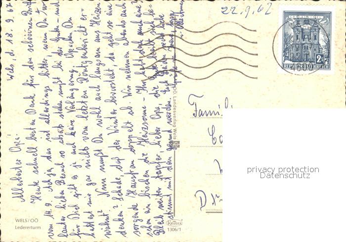 72244831 alte Postkarte Wels Oberoesterreich Ledererturm postalisch gelaufen Erhaltung siehe scans KatCode: 11390