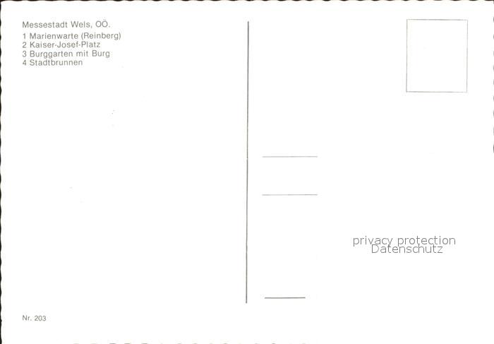 72213714 Wels Oberoesterreich Marienwarte Kaiser Josef Platz Burggarten mit Burg Stadtbrunnen postalisch nicht gelaufen Erhaltung siehe scans KatCode: 11390