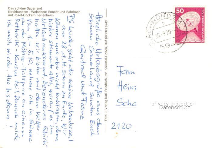 73088365 alte Postkarte Welschen Ennest Rahrbach Josef-Gockeln-Ferienheim postalisch gelaufen Erhaltung siehe scans [PaolaD17] KatCode: 11110005966016