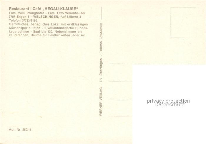 73642948 Welschingen Restaurant Cafe Hegau Klause Kegelbahn postalisch nicht gelaufen Erhaltung siehe scans [FriedD77] KatCode: 11110008335022