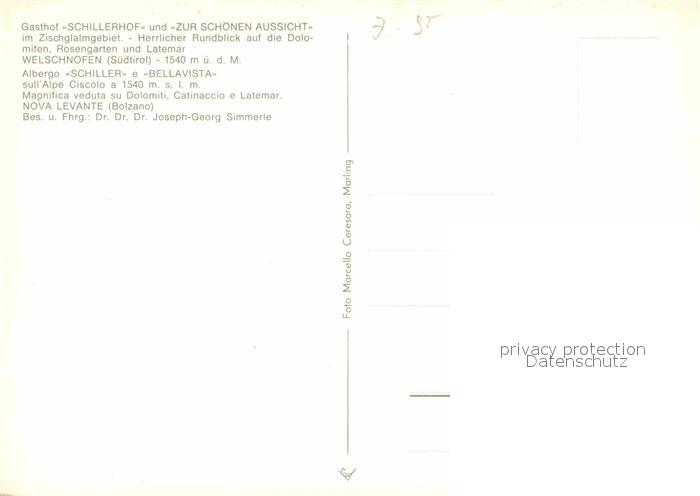 Welschnofen Suedtirol Gasthof Schillerhof und Zur Schoenen Aussicht postalisch nicht gelaufen Erhaltung siehe scans [AndreD76]