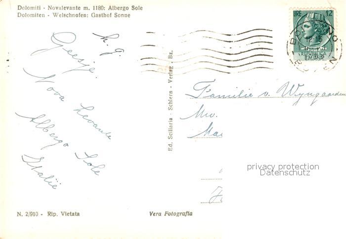 32984264 Welschnofen Suedtirol Novalevante Albergo Sole postalisch gelaufen Erhaltung siehe scans [NatalD47] old postcard Nata Katcode 11240