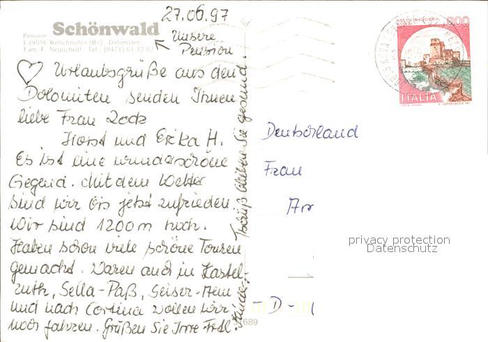 old postcard Welschnofen Suedtirol Pension Schoenwald postalisch gelaufen Erhaltung siehe scans