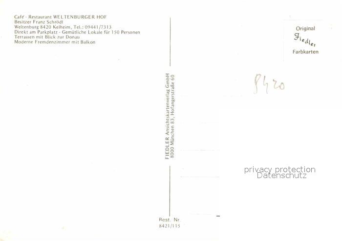 72840075 Weltenburg Kelheim Gaststaette Weltenburger Hof Kloster Weltenburg Donaudurchbruch Befreiungshalle postalisch nicht gelaufen Erhaltung siehe scans [WerneD78] KatCode: 11110009273137