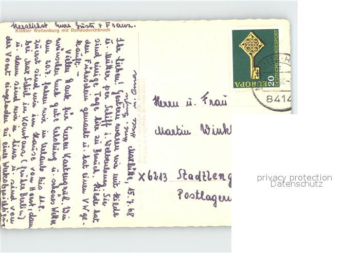 72015362 alte Postkarte Weltenburg Kelheim Kloster Weltenburg mit Donaudurchbruch postalisch gelaufen Erhaltung siehe scans KatCode: 11110009273137