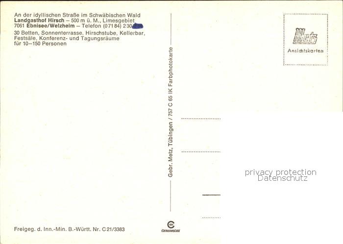 Welzheim Ebnisee Fliegeraufnahme Landgasthof Hirsch postalisch nicht gelaufen Erhaltung siehe scans