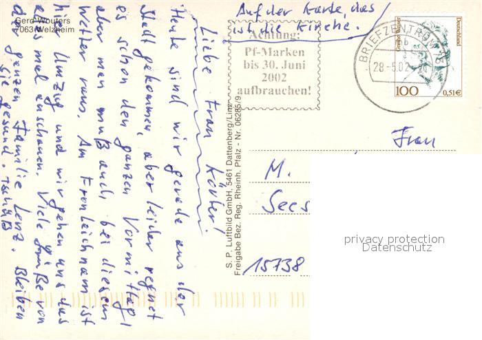 73683862 alte Postkarte Welzheim Fliegeraufnahme mit Kirche postalisch gelaufen Erhaltung siehe scans [LiesaD40] KatCode: 11110008119084