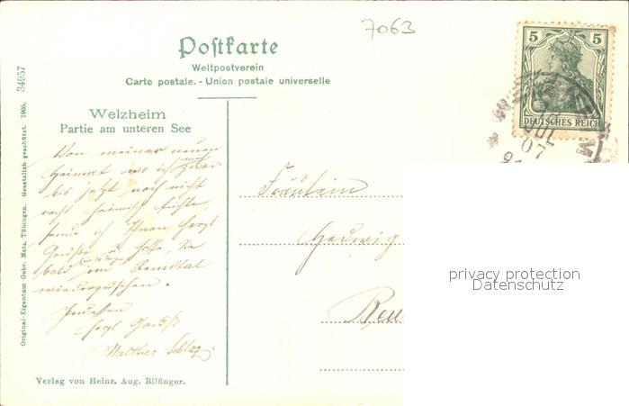 31727635 alte Postkarte Welzheim Partie am See postalisch gelaufen Erhaltung siehe scans KatCode: 11110008119084