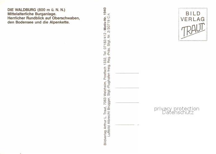 72905744 Welzheim Waldburg Mittelalterliche Burganlage Oberschwaben Bodensee Alpenkette Fliegeraufnahme postalisch nicht gelaufen Erhaltung siehe scans [FriedD77] KatCode: 11110008119084