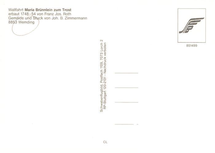 73941731 Wemding Bayern Wallfahrtskirche Maria Bruennlein postalisch nicht gelaufen Fliegeraufnahme Erhaltung siehe scans [FriedD77] KatCode: 11110009779228