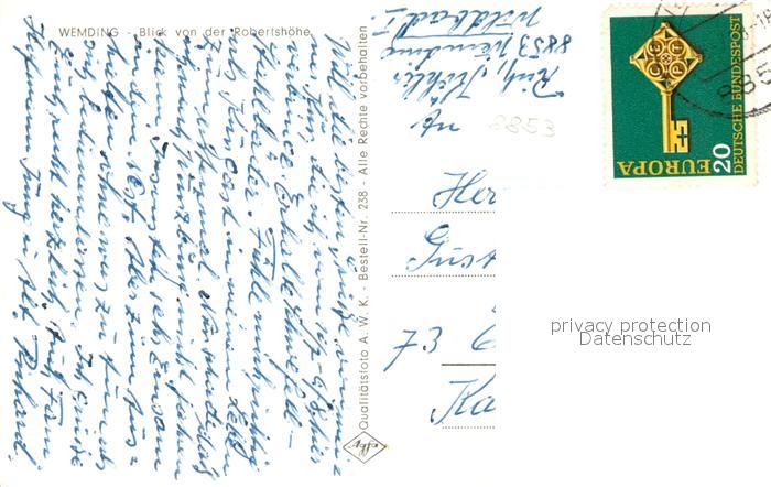73671781 alte Postkarte Wemding Panorama Blick von der Robertshoehe postalisch gelaufen Erhaltung siehe scans [FriedD77] KatCode: 11110009779228