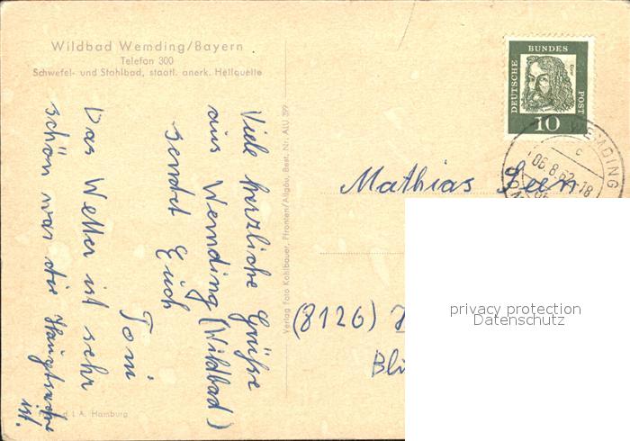 72537647 alte Postkarte Wemding Schwefel- und Stahlbad postalisch gelaufen Erhaltung siehe scans [AndreD76 kt119box] KatCode: 11110009779228