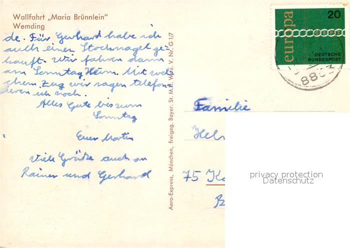 72931547 alte Postkarte Wemding Wallfahrt Maria Bruennlein postalisch gelaufen Erhaltung siehe scans [KathaD81] KatCode: 11110009779228