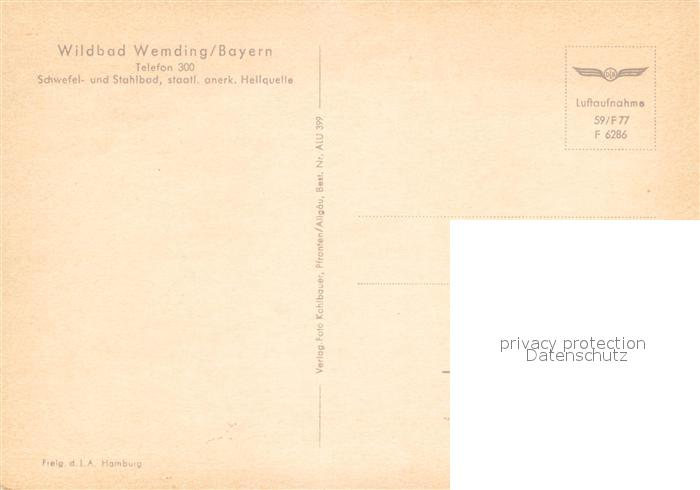 73744850 Wemding Wildbad Fliegeraufnahme postalisch nicht gelaufen Erhaltung siehe scans [FriedD77] KatCode: 11110009779228