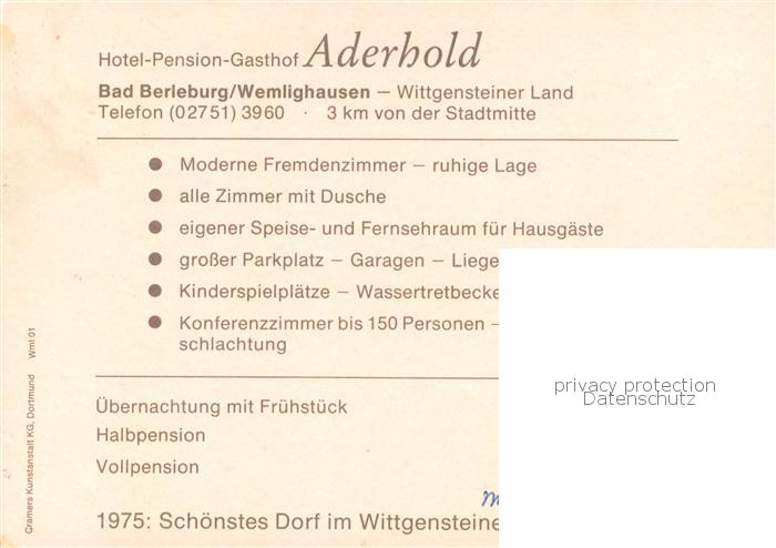 73759832 Wemlighausen Hotel Pension Gasthof Aderhold Gastraeume Panorama postalisch nicht gelaufen Werbekarte (keine Postkarte) Erhaltung siehe scans [FriedD77] KatCode: 11110005970004