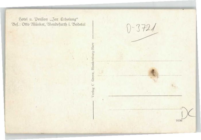 40623785 Wendefurth postalisch nicht gelaufen KatCode: 11110015085015
