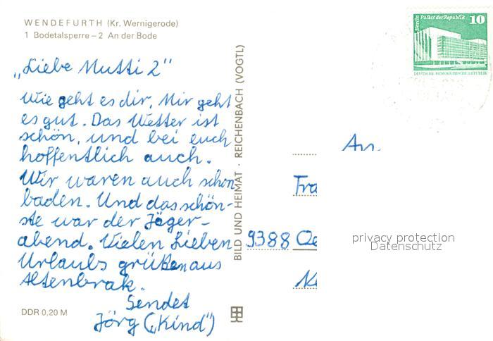 73034458 alte Postkarte Wendefurth Bodetalsperre An der Bode postalisch gelaufen Erhaltung siehe scans [WerneD78] KatCode: 11110015085015