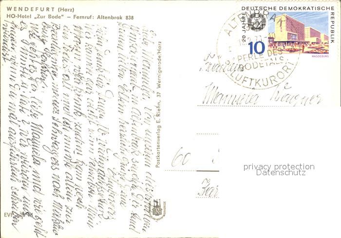 71980188 alte Postkarte Wendefurth HO Hotel Zur Bode postalisch gelaufen Erhaltung siehe scans KatCode: 11110015085015