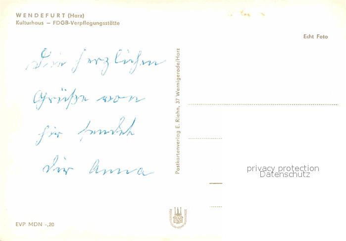 72681006 Wendefurth Kulturhaus FDGB Verpflegungsstaette postalisch nicht gelaufen Erhaltung siehe scans [LiesaD40] KatCode: 11110015085015