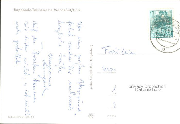 72165632 alte Postkarte Wendefurth Rappbode Talsperre Sperrmauer postalisch gelaufen Erhaltung siehe scans KatCode: 11110015085015
