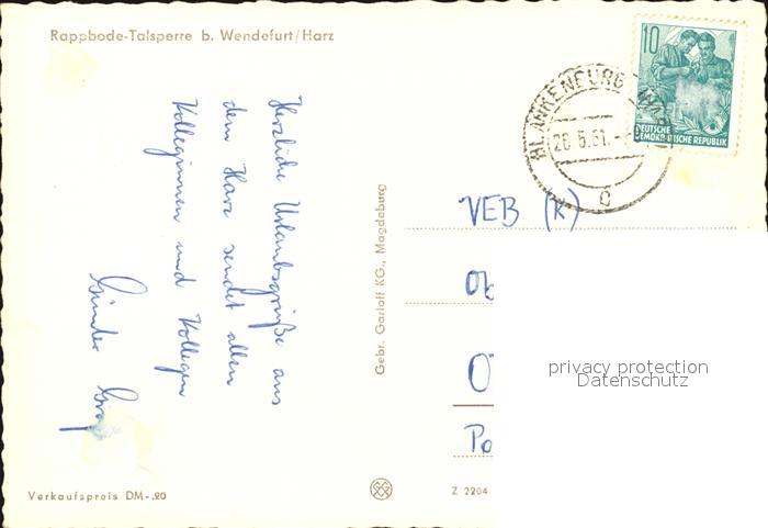 72429926 alte Postkarte Wendefurth Rappbode Talsperre Staumauer postalisch gelaufen Erhaltung siehe scans KatCode: 11110015085015